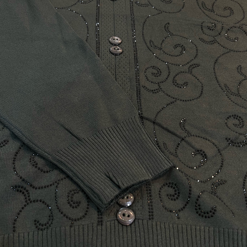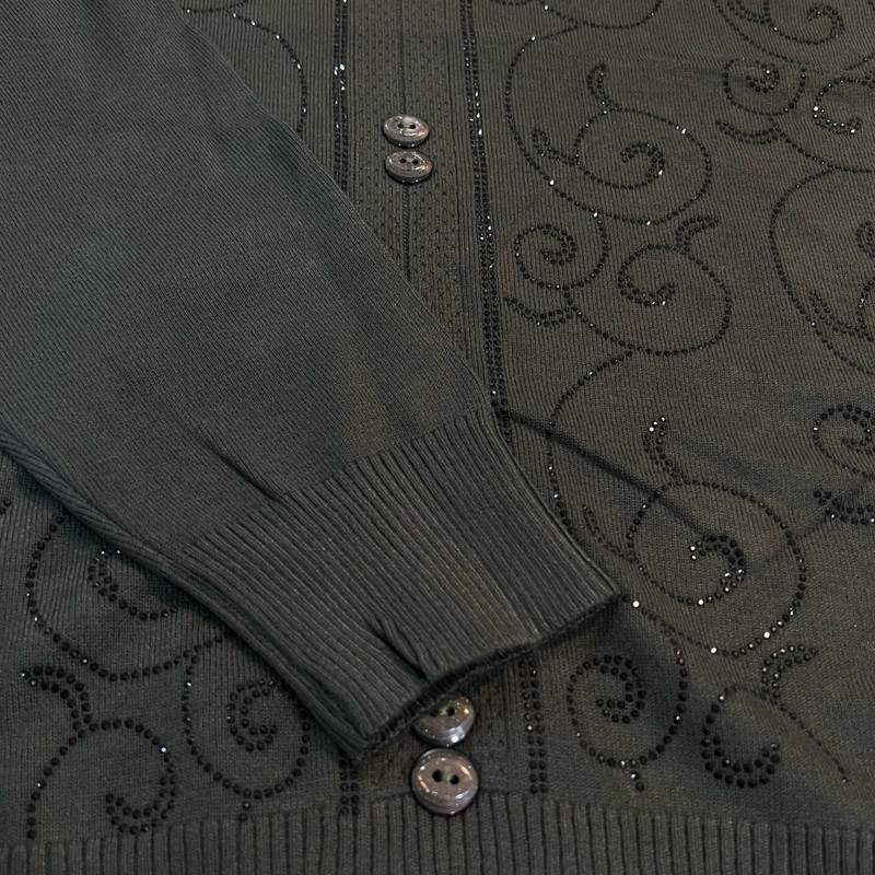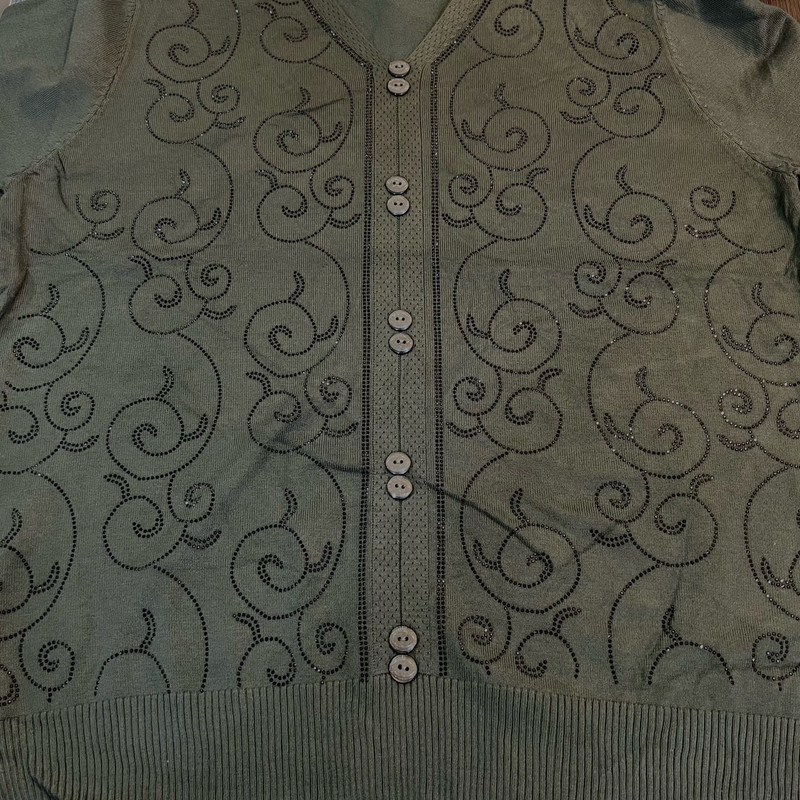 طرحهای ظریف و هماهنگ نقشدار که بهصورت یکپارچه در بافت پارچه اجرا شدهاند، جلوهای فاخر و چشمنواز به این پلیور بخشیده و بدون ایجاد شلوغی بصری، ظاهری آراسته و متین ایجاد میکنند. یقه هفت در کنار ردیف دکمههای ساده و خوشفرم، به خوشفرمتر دیدهشدن بالاتنه کمک کرده و امکان ستکردن آن با انواع شومیز، بلوز یا تاپ را بهراحتی فراهم میسازد.