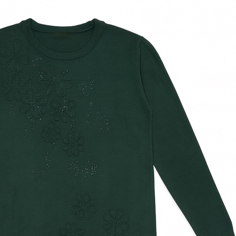 بلوز زنانه سبز یقه گرد با طرح گل برجسته
