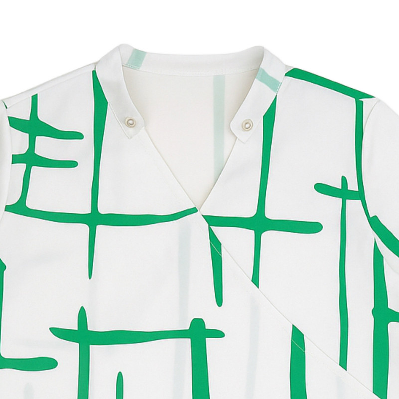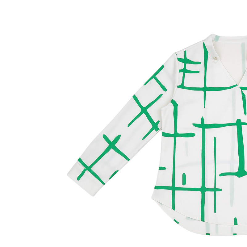 این بلوز زنانه با طراحی خاص و منحصربهفرد، جلوهای مدرن و متفاوت به استایل روزمره شما میبخشد. زمینه سفید روشن با نقوش هندسی سبز رنگ، ترکیبی شیک و چشمنواز ایجاد کرده که هم برای استفاده روزانه و هم برای موقعیتهای نیمهرسمی مناسب است. یقه طراحی شده با برش ضربدری و دکمههای مخفی روی شانه، این بلوز را از حالت ساده خارج کرده و ظاهری خاص و امروزی به آن میدهد.