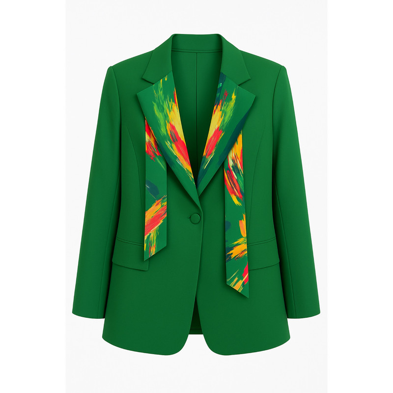 این ست کت و شلوار زنانه با طراحی معاصر و دوخت کاملاً رسمی، از پارچهای باکیفیت و خوشفرم تهیه شده و بهصورت یکدست واحد قابل استفاده در مجالس رسمی، محیطهای کاری و میهمانیهای سطح بالا است. ترکیب رنگ مشکی خالص بهعنوان رنگ پایه، در کنار نقوش آبی با طرح ماربل در یقه کت و بخش جلویی آن، جلوهای متمایز، شیک و در عین حال کاملاً آراسته ایجاد کرده است. نکته حائز اهمیت آنکه کراوات متصل به کت قابل جدا شدن بوده و با توجه به سلیقه و نوع مجلس، امکان استفاده از کت بهصورت ساده یا همراه با کراوات فراهم است. فرم کت، تنخور نیمهفیت با قد میانی و یقه برگردان پهن دارد و شلوار با برش راسته و اندکی گشاد، ضمن ایجاد ظاهری کشیده و شیک، راحتی مطلوب در زمان استفاده را فراهم میآورد.