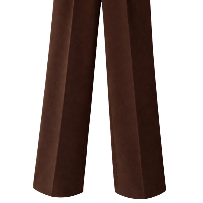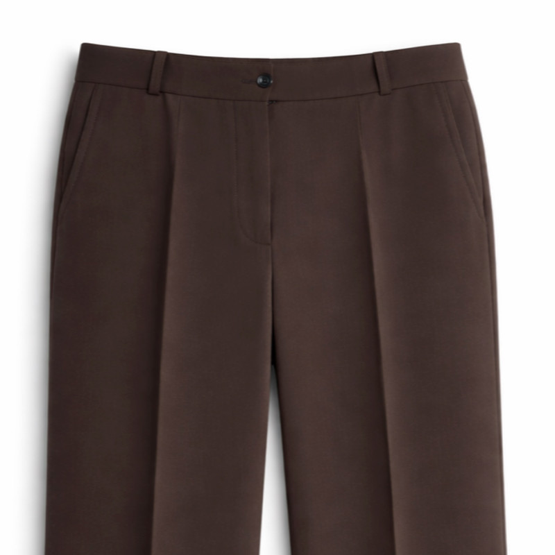 اتوی جلوی شلوار: از جلو اتوخورده است که فرم رسمی، صاف و منظم به شلوار میدهد و باعث میشود در استایلهای کاری یا مجلسی، جلوهای مرتب و خاص داشته باشد.