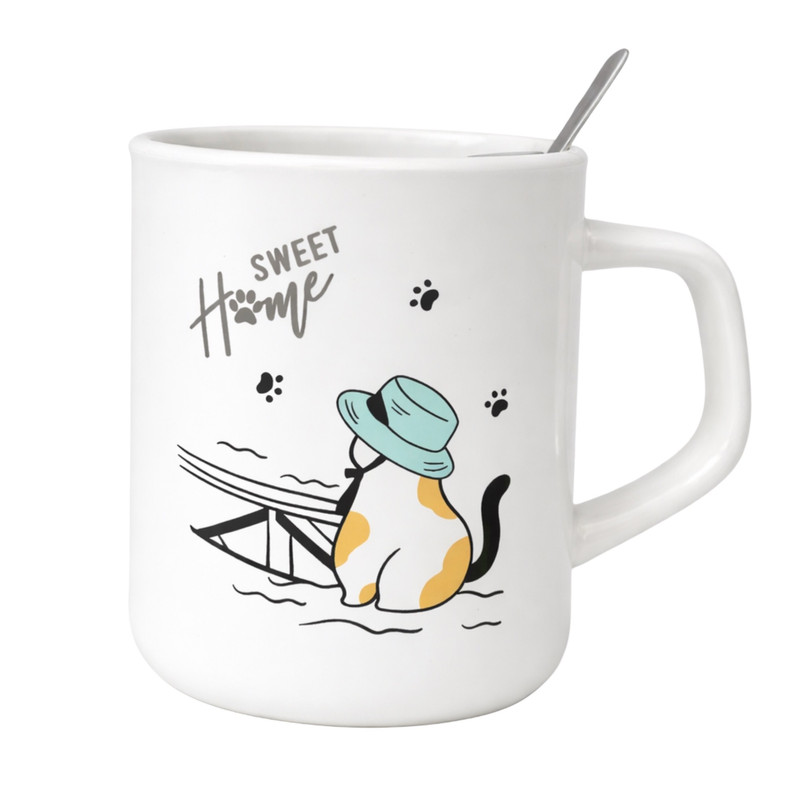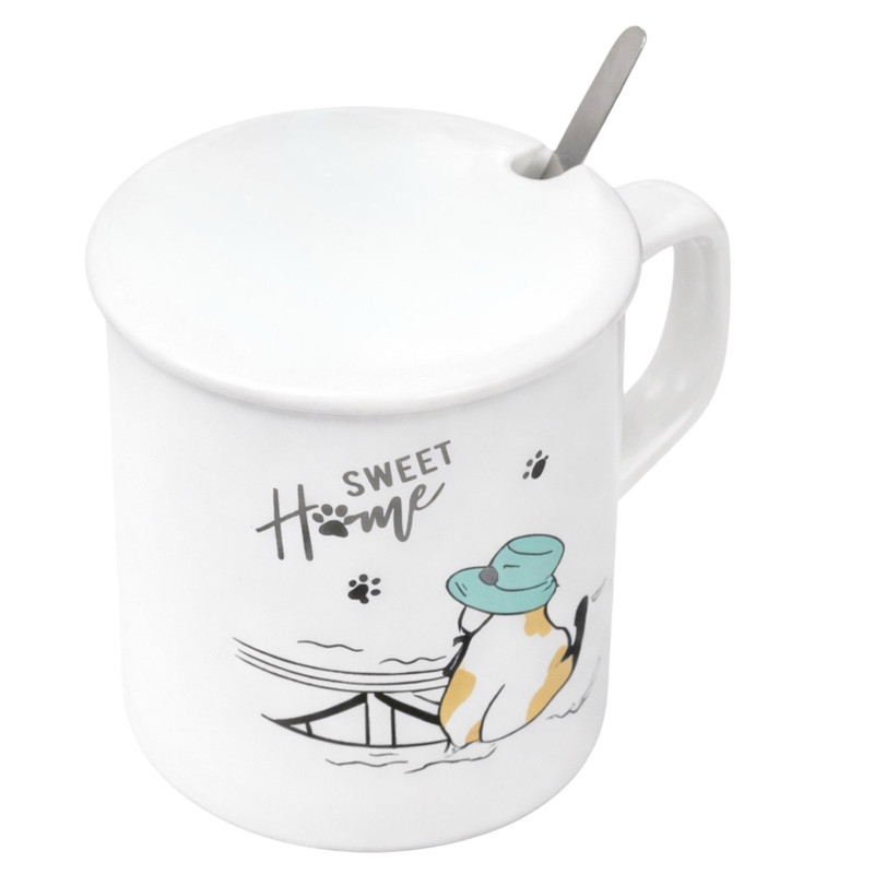 ماگ سرامیکی وارداتی طرح عروسکی همراه با درب و قاشق استیل