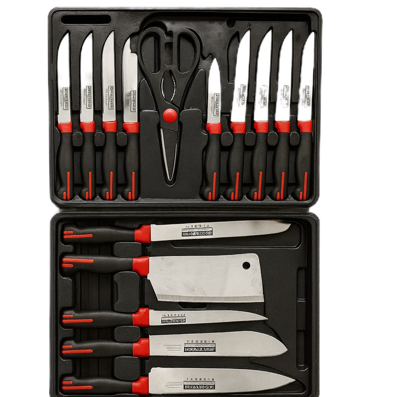 ست چاقوی آشپزخانه Koch Messer محصولی ممتاز از کشور آلمان است که با تکیه بر دانش فنی و استانداردهای دقیق این برند، برای پاسخگویی به تمامی نیازهای حرفهای و خانگی در آشپزی طراحی شده است. این مجموعه شامل ۱۵ عدد چاقو با کاربردهای گوناگون بوده و هر تیغه با دقت بالا از فولاد مقاوم ضدزنگ و ضد خوردگی ساخته شده است تا دوام، تیزی و کارایی طولانیمدت را تضمین کند.